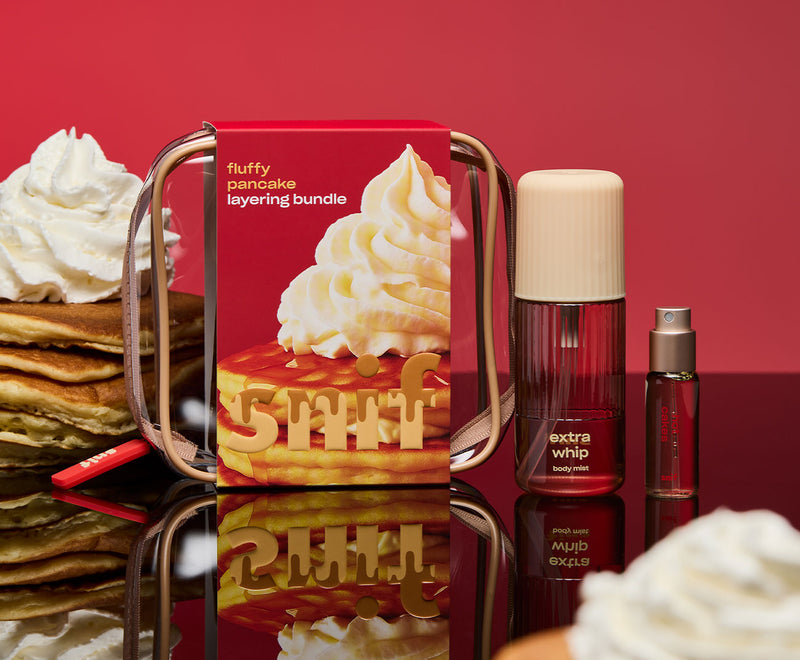 A fluffy flapjack scent with stackable travel-sized body mist toppings.