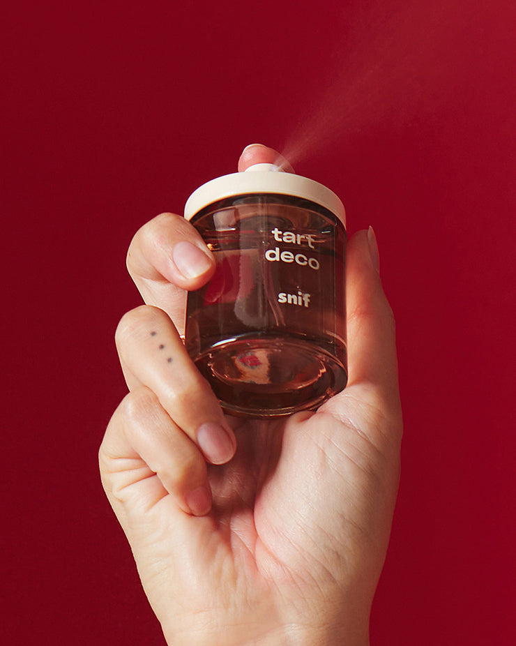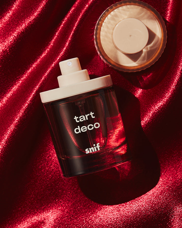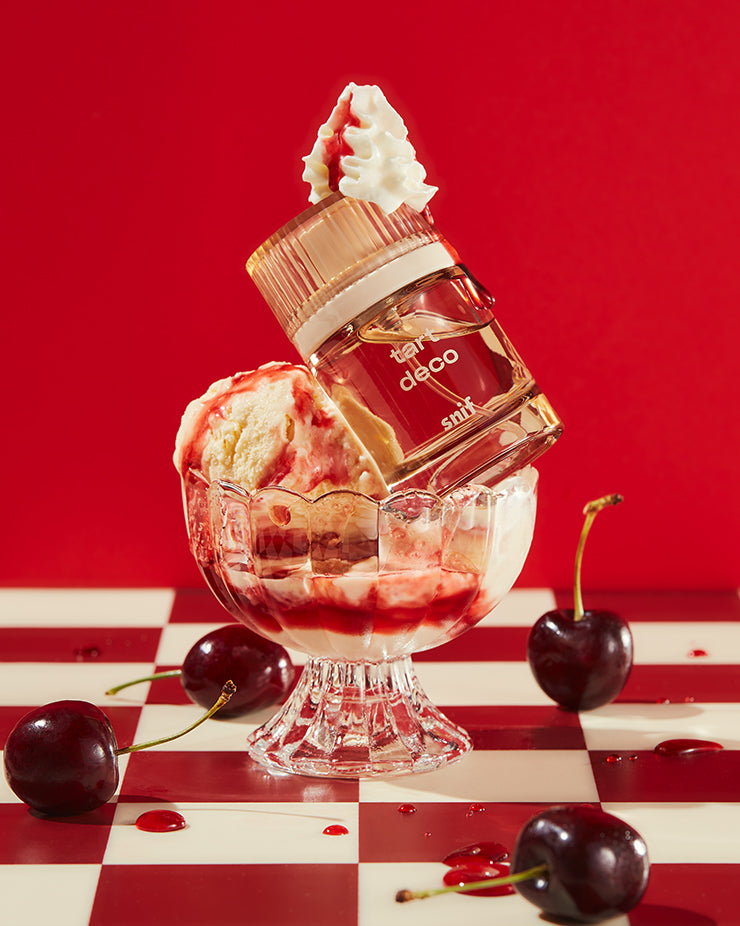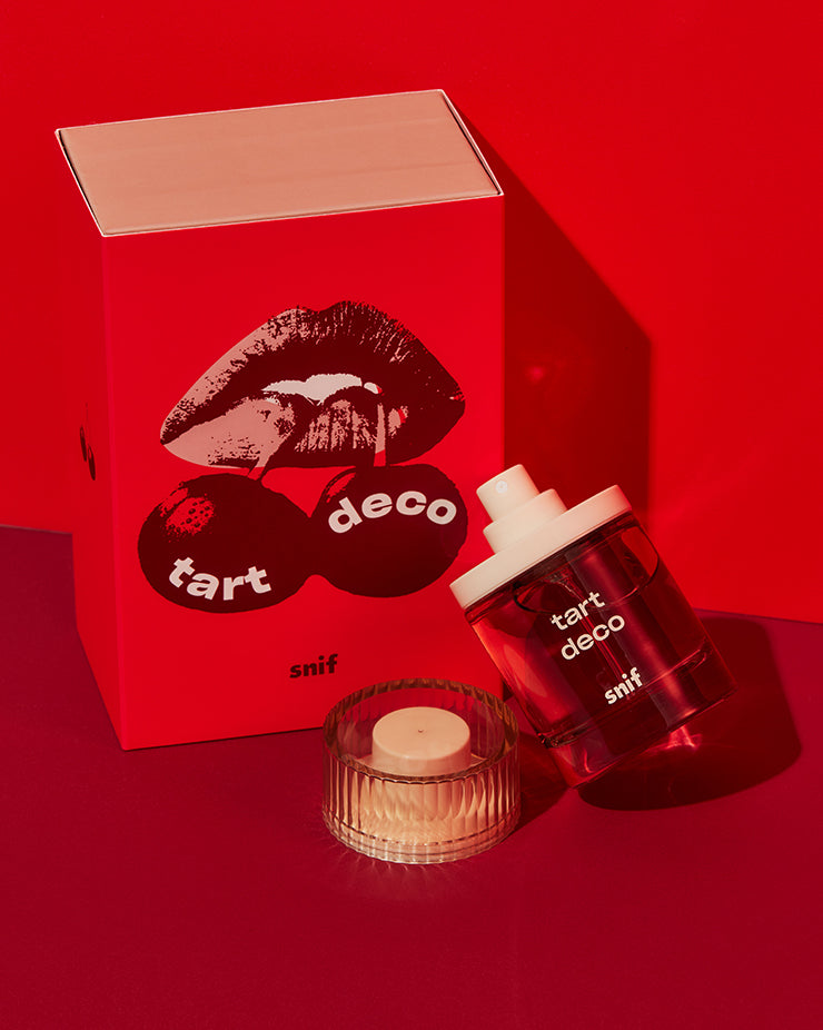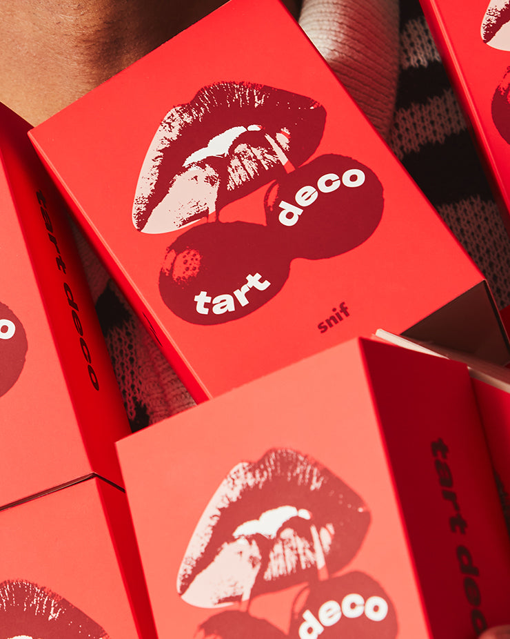 A cherry scent that bottles the sweet smell of nostalgia. Tart Deco is a nod to simpler, more playful times. When the mall was the ideal night out, not just a place to return a bad gift.