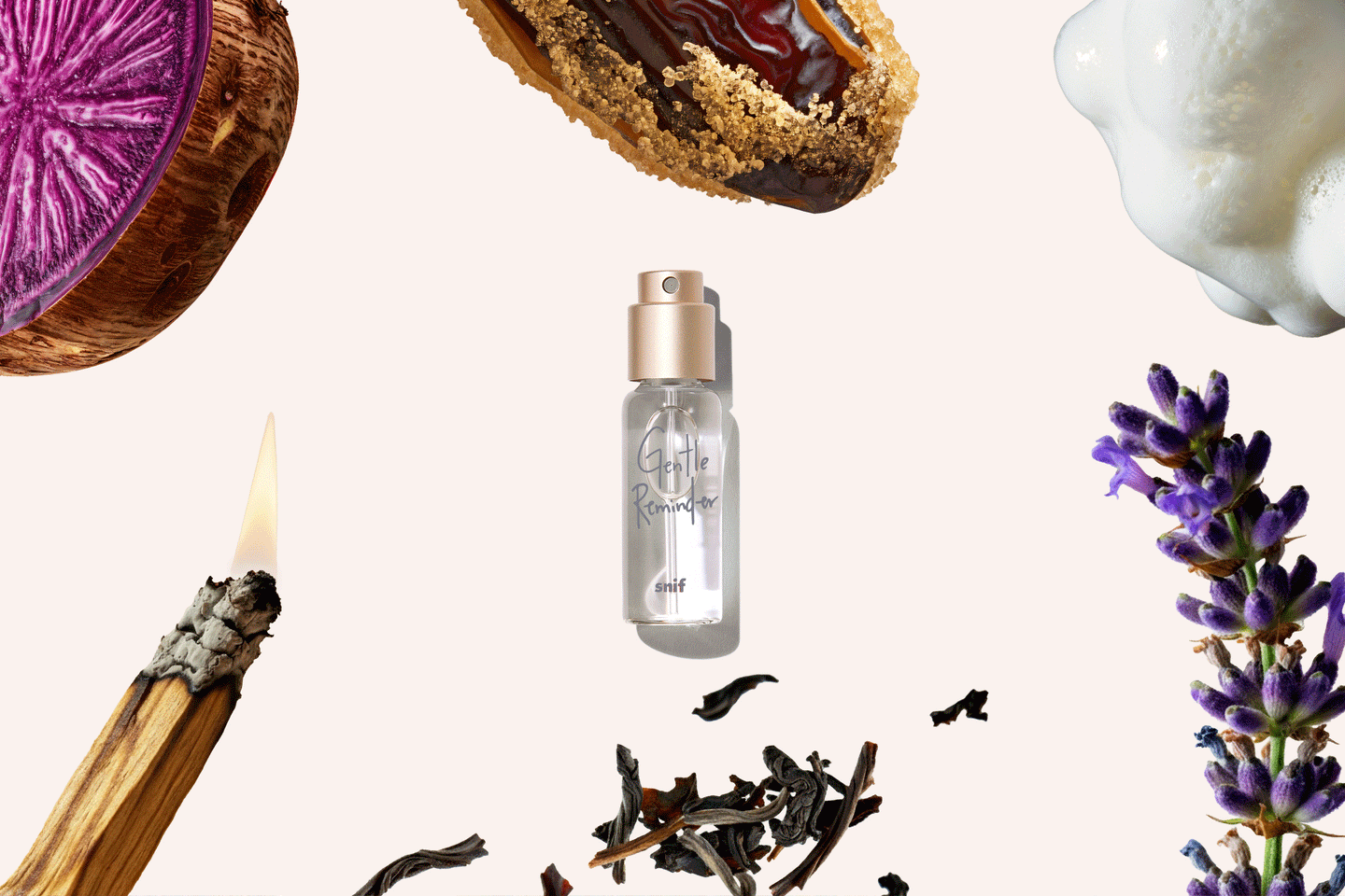 Gentle Reminder: Lavender, Purple Ube, Milk Froth, Black Tea, Palo Santo, Date Sugar -